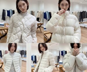「パウダーソフトダウンジャケット」は、試着した白ダウンの中で、防寒性と着心地、美シルエットのトータルバランスがダントツ! 幅のあるキルティングや上品なツヤ感で冬コーデが一気に洒落見えするし、細部にまでこだわった防寒対策のおかげで、真冬でも快適に過ごせそう。空港コーデやKアイドルっぽいファッションにもマッチするデザインも好評でした♡