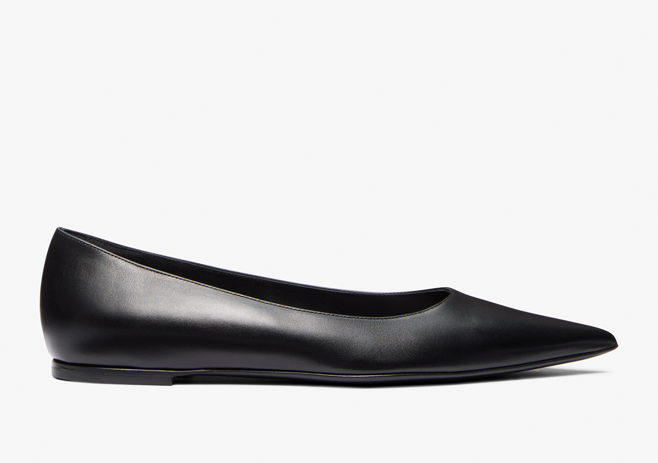 甘くなりがちなフラットシューズもV字シェイプで辛口な印象に。