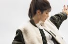〝DOUBLE STANDARD CLOTHING〟のブルゾン¥110,000・〝Sov.〟のスカート¥47,300(フィルム)、ビスチェ・カーディガン[セット]¥36,300 (ウーア)、バッグ¥88,000・靴¥55,000(コーチ<COACH>)、ピアス¥3,850(mimi33/サンポークリエイト)
