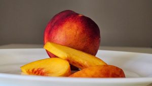 • Peach,And,Peach,Slices,Close,Up,,On,White,Plate