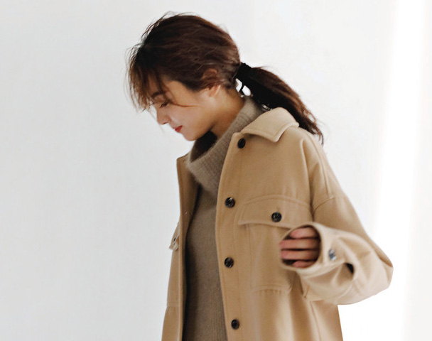 スカート¥22,000(マイストラーダ)、コート¥19,800(ヒロタ<31 Sons de mode>)、ブラウス¥18,920(NAVE/オンワード樫山)、バッグ¥17,600(セムインターナショナル<AULENTTI>)、靴¥33,000(ALM.)