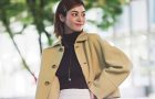 スリット上のジップとフロントに寄せられたタックが、タイトスカートのさりげないアクセントに。トップスは最旬のボウタイブラウス、さらにリッチな印象のファーブルゾンをはおったトリプル映えコーデで、ドラマティックに仕上げて。