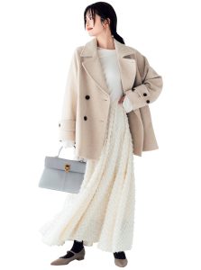 【1/16のコーデ】冬こそ着るべきALL白スタイル♡素材感のあるワンピで華やかに