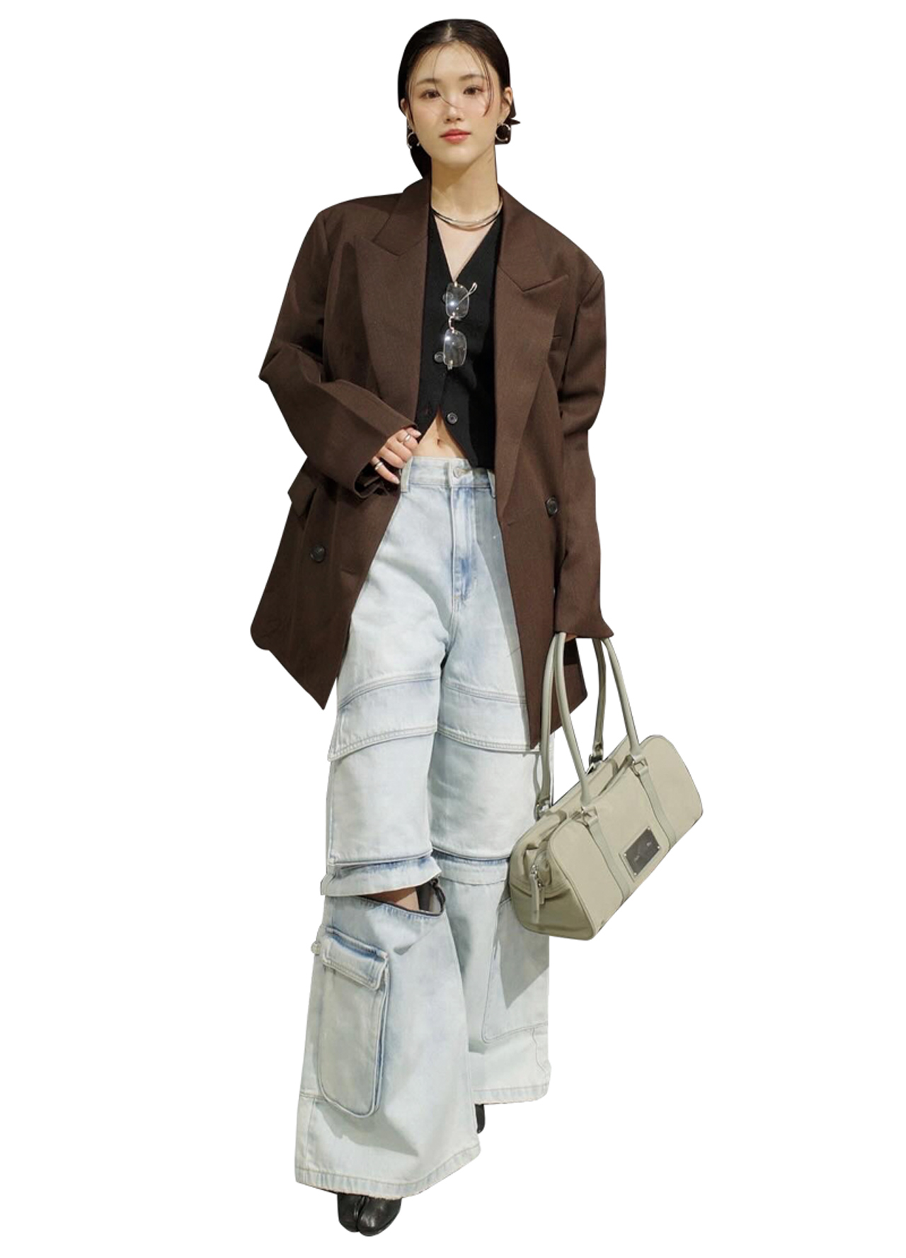 スタイリングもシルエット重視で、心がけているのは下重心のバランス。下をボリューミィにして頭をキュッとタイトにした三角形フォルムを意識してます。あとは全体像を見る習慣があると、センスが磨かれていくのかな。鏡を見ずに慌てて家を出て、電車のガラスに映った自分を見て「待って、今日服変かも!!」ってなることあるじゃないですか。自分のコーデを写真に撮って見てみるのもいいと思います。全体のバランスが見れて、いったん冷静になれる(笑)。その積み重ねでブラッシュアップしていったら、いつか自分ルールが生まれて、トレンドを取り入れてもどこか一本芯が通ったスタイルができていく気がします」