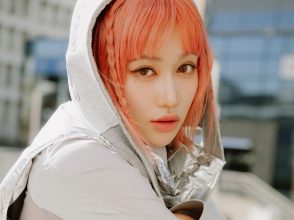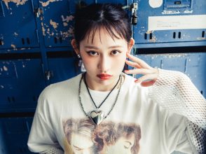 スエット¥7,920(サンタモニカ 原宿店)、ワンピース¥68,000(LYDIA<ヤンヤン>)、中に着たパンツ¥4,950(原宿シカゴ 神宮前店)、バッグ¥57,200(GANNI)、”アルポ”のネックレス[上]¥39,380・”バルブス”のネックレス[下]¥68,420(ズットホリック)