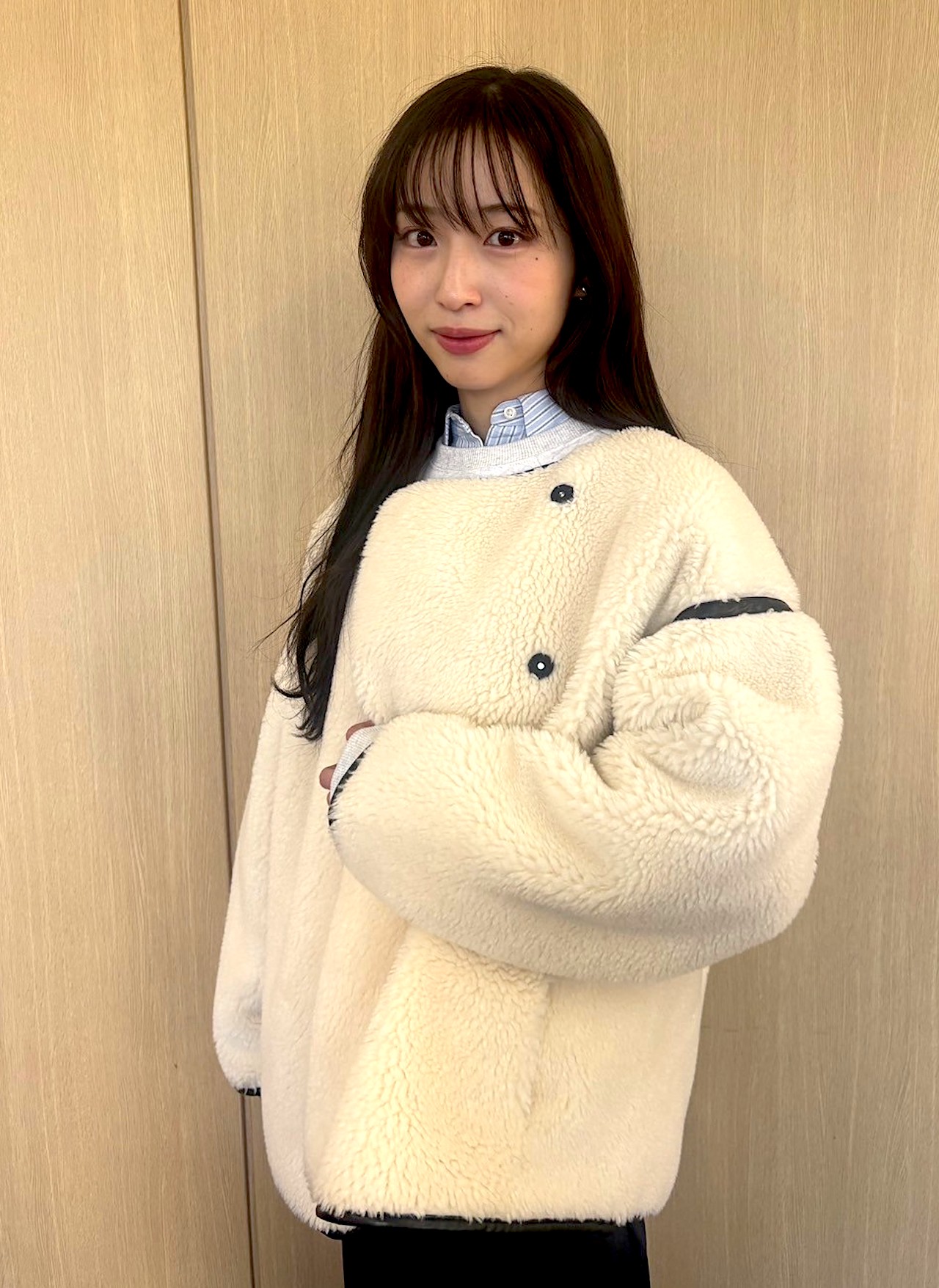 寒さが厳しい今日は、もこもこボアコートでしっかり防寒も!
