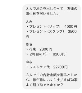 • 飲み会も旅行も!面倒な「割り勘」計算を「ChatGPT」にお願いしたら…簡単で便利すぎた。