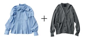 • 季節の変わり目は…「ブラウス」の重ね着が超絶便利!【ボウタイ×きれいめカーデ編】