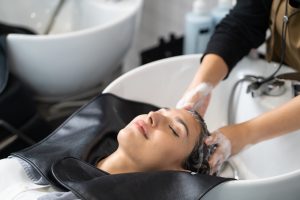 • Beautiful,Caucasian,Women,Feel,Relax,And,Comfortable,While,Getting,Hair