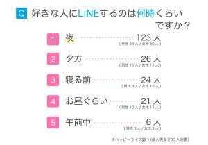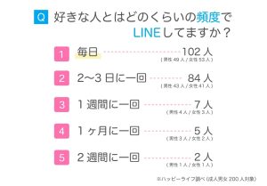 • 好きな人とのLINEの頻度、どれくらいがベスト?送る時間帯は?男女200人の本音は…
