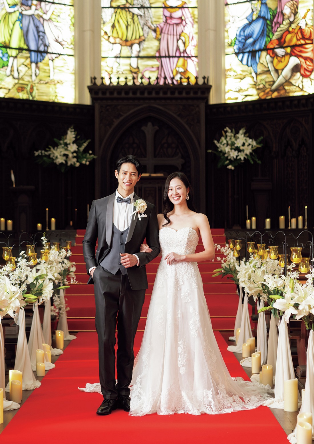 前撮りはCasa d’ Angela Aoyamaの本格大聖堂で。雰囲気がありドレスがよく映える場所だったので、大満足の仕上がりになりました。実際の式・披露宴はこの雑誌(CanCam5月号・3/22発売)が出る頃にする予定。当日の様子は、後日SNSなどで発信します。よかったら見てくださいね」(西山さん・以下同)