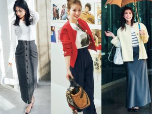 いつものタイトスカートにギャザーを加えるだけで、トレンド感が急上昇♡ 透けトップスを合わせた女っぷりのいい着こなしで、視線を集めて!