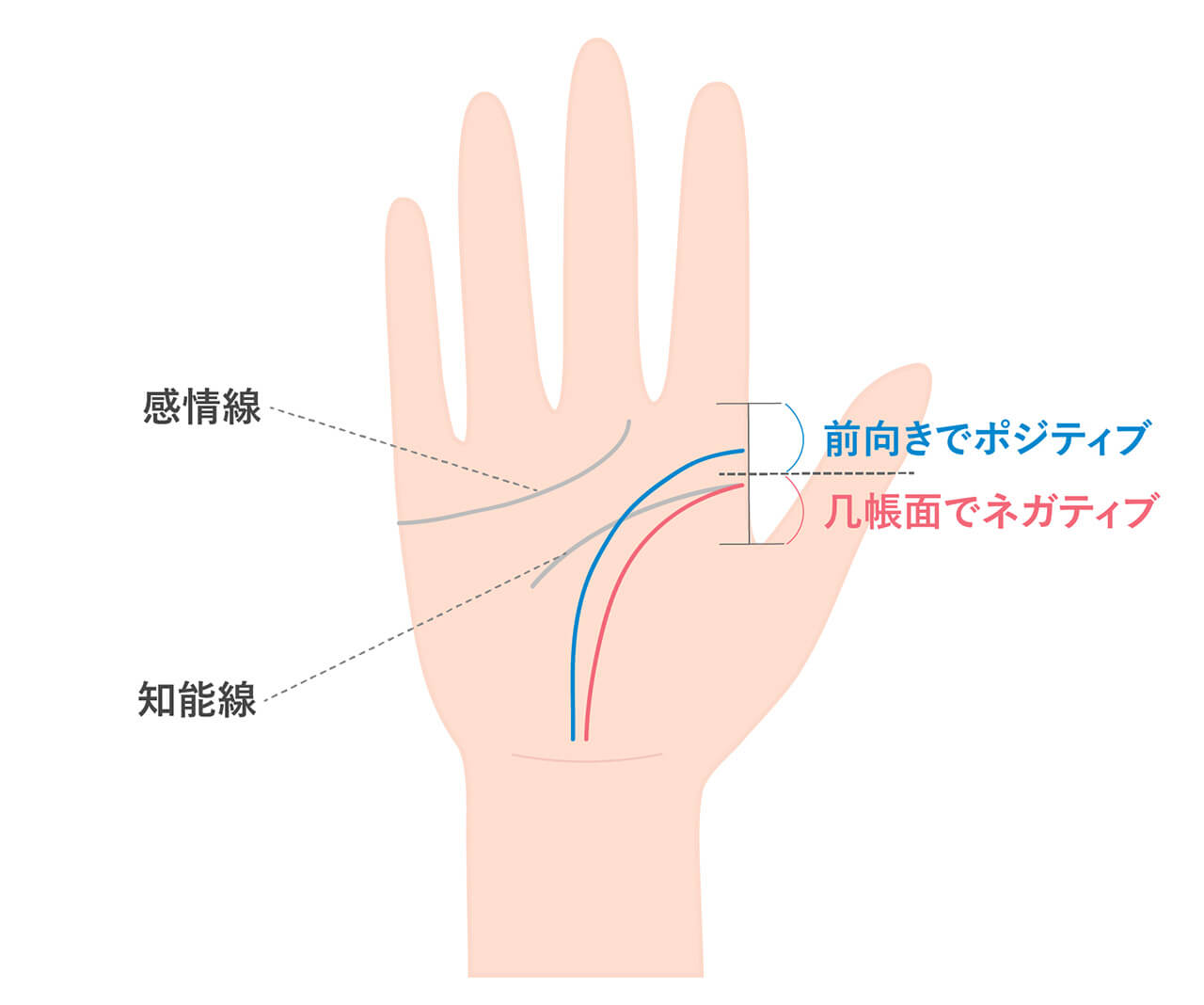 生命線が始まる位置にも意味があります。その起点が人差し指と親指付け根の中央付近より高い場合、ポジティブかつ前向きな性格で、何事にも全力で取り組むタイプだと考えられます。