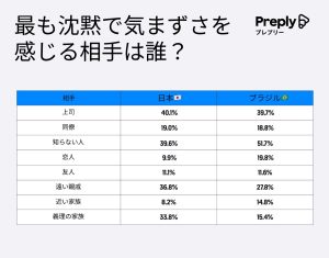 • ……。「沈黙で気まずさ」を感じるシチュエーションについて、世界各国の人に聞いてみたら…