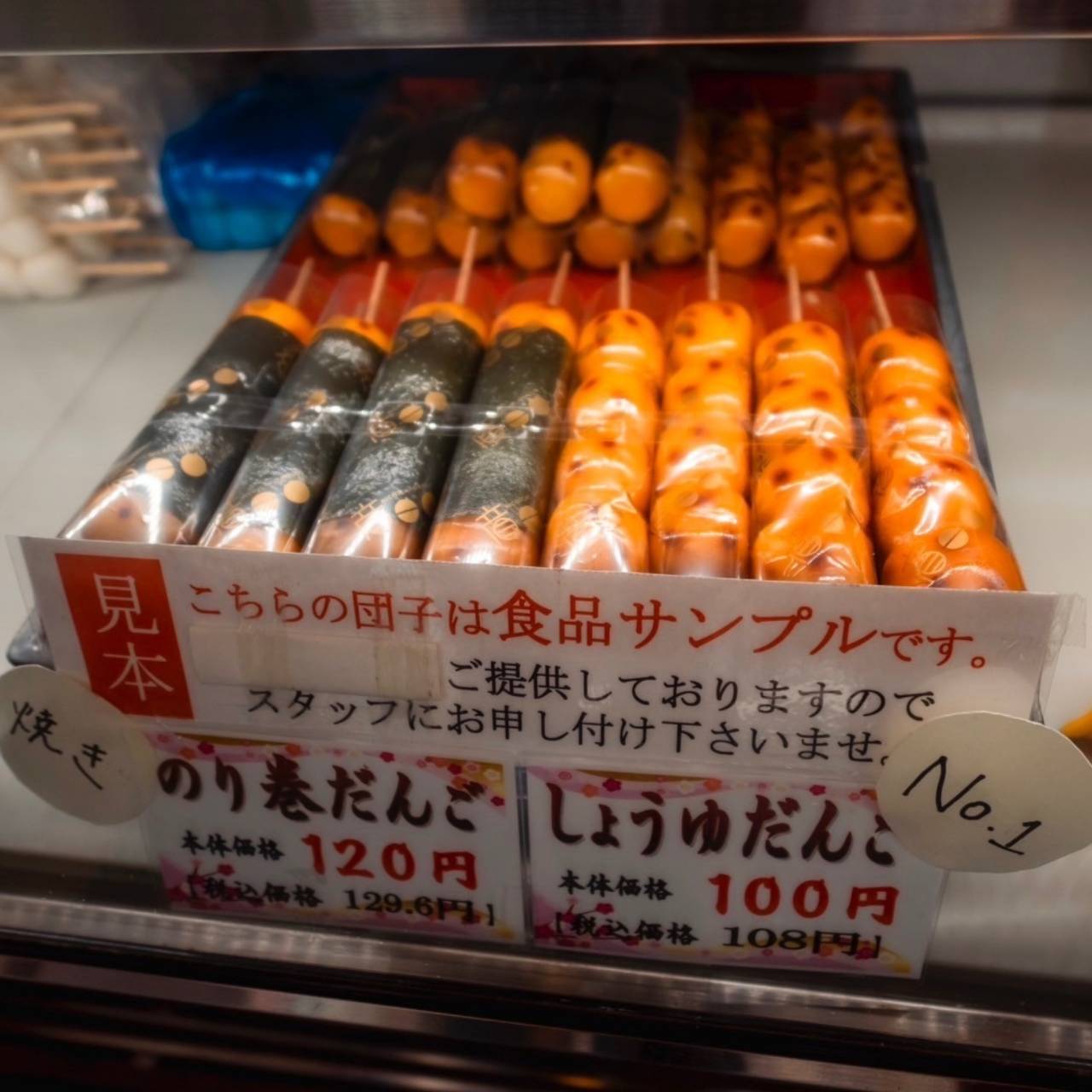 みたらし団子や紫いもの団子など魅力的なラインナップの中から、私はのり巻団子を選んだ。