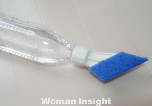 下:水を入れたペットボトルにセットして使う、お掃除グッズを発見! クリーナーの先が尖っているので、サッシの溝の隅までキレイに。 <ペットボトル 不織布クリーナー>