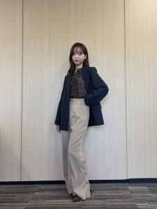 かっちりジャケットはシャツ選びで遊んで抜け感を♡ 人気お天気キャスター・林佑香さんの毎日コーデ【11月3日分】
