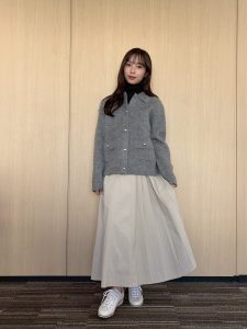 【写真9枚】盛れるグレーニットにプレッピー要素を足してみたら…? 人気お天気キャスター・林佑香さんのコーデ【11月13日分】
