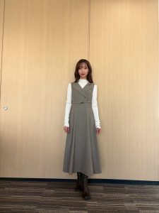 グレーのフレアミニですらりと美脚見え♡ めざましお天気キャスター・林佑香さんの毎日コーデ【2月10日分】