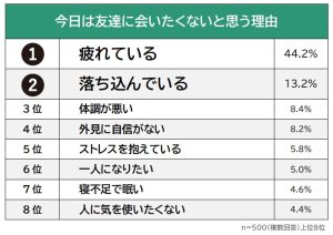 • 誰にだってある。「今日、友達に会いたくないな」と思う理由、2位「落ち込んでいるとき」1位は…やっぱりコレ