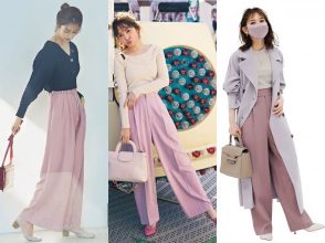 ウエスト周りをカバーするタックと、体のラインを拾わないゆとりのある裾が、ほっそりとした美脚見えに有効♡ 華やかさを盛れるたまごイエローも、使い勝手抜群!