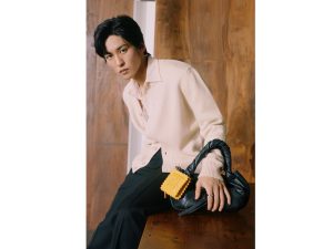 ブランドアンバサダーを務める、アーティストで俳優の目黒蓮さん。「FF」ロゴが描かれたラヴィオリ型のチャームをあしらい、シンプルシックなコーデに遊び心を加えています。