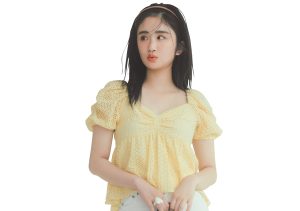 ▼イエローブラウスで顔まわりをぱっと明るく!