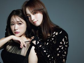 松本さんがFRUITS ZIPPERでべビーピンク、桜庭さんがCUTIE STREETでピンクを担当していて、普段はピンク系の衣装を着ることが多いふたりですが、今回は黒を基調にしたゴシック風の衣装で撮り下ろし。