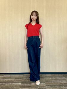 • 【写真4枚】「ワインの日」は赤ニットが主役のフレンチルックで♡『めざましテレビ』お天気キャスター・林佑香さん毎日コーデ【8月20日分】