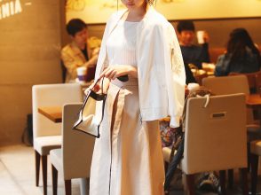 グリーンやベージュなど、深みのあるカラーでキャッチーなバッグに落ち着きを。コーデもスモーキーな色合いでそろえて、チャーミングな大人の装いを楽しんで。ノースリーブで涼しげな印象はキープしつつ、コーデュロイやファーなど素材感で秋を先取りするのが洒落見えの近道!