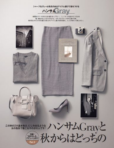 さて、今回は「グレー」のアイテム選びについて。クールでシャープなグレーは、色気のあるアイテムを選ぶのが、差をつけるポイントです。「グレー」のアイテム選び術を、『Domani』10月号よりご紹介します。