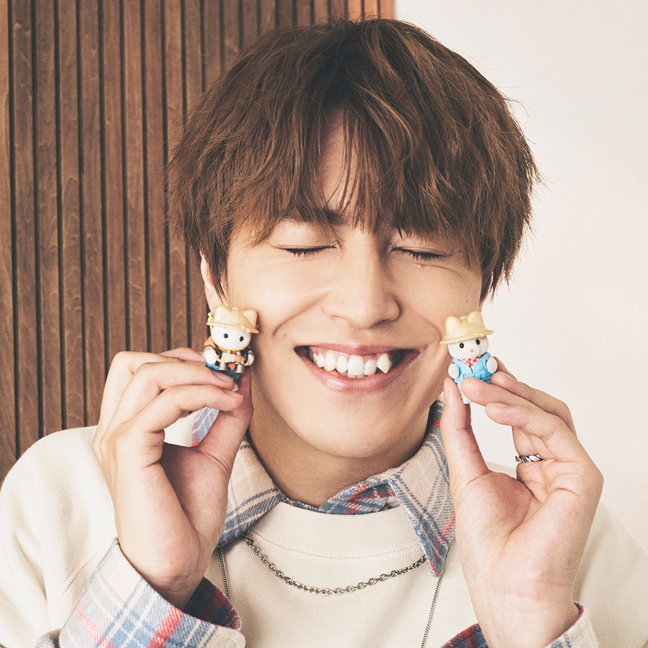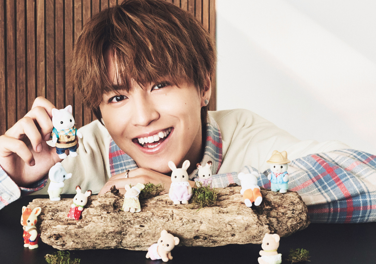 「昔からヒーローものよりもかわいいものが好きな子供でした。でもシルバニアは女のコが遊ぶイメージが強くて、なかなか『欲しい』と言い出せず…。その頃からシルバニアに対する灯みたいなものはずっとあったと思います。再燃のきっかけは去年福岡にライブに行ったとき。立ち寄ったコンビニに、7種+シークレットの人形がランダムで入った袋が売られていたんです。そんなふうに売られているイメージがなかったので思わず手に取って、改めてかわいい、集めたいなと思いました。今では観賞用も含めて100体は持っています! オンラインショップではなく、実際に見て触って選ぶのがこだわり。選びの基準は直感で癒やされるかどうか! 例えば『ペルシャネコのみつごちゃん』はふわふわしていて、触ったときの癒やされ感が倍増♡ よくお仕事の遠征にも持って行っています。僕たち超特急のファンカラーである、ピンクの服を着たコを持っていくことも。バックヤードの自分のエリアに並べています。写真を撮るとかよりも、見ているだけで落ち着く、お守りみたいな存在。そして、“癒やしを教えてくれる大先生”でもあります。シルバニアは今年40周年ということもあり、年齢的にも超大先輩なので(笑)。僕も今みなさんにエンターテインメントを届ける活動をしていますが、そんな僕自身の性格のベースには、かわいいものへの憧れや触れ合いから生まれたやわらかさがあると思うんです。だからシルバニアは大先生! 最近は『シルバニアが好き』と言っていたらスタッフさんからポーチをいただいたり、メンバーのシューヤくんやカイが人形をプレゼントしてくれたり。超特急のファンである8号車のみなさんも最近スマホケースにシルバニアのステッカーを入れていて、僕の好きな“かわいい”をみんなで共有できているのがうれしい。“かわいい”の輪をもっと広げていきたいです!」