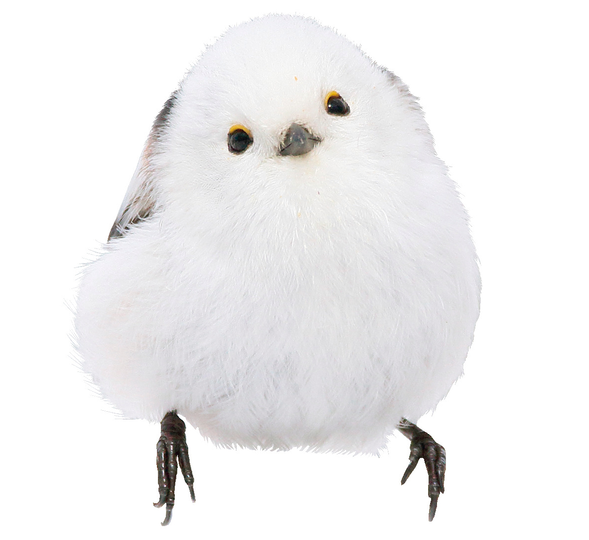 国内では北海道にしか生息しない通称〝雪の妖精〟。真っ白で小さくてふわふわなシマエナガは、冬になると寒さから身を守るために羽毛を膨らませ、丸みがアップ!