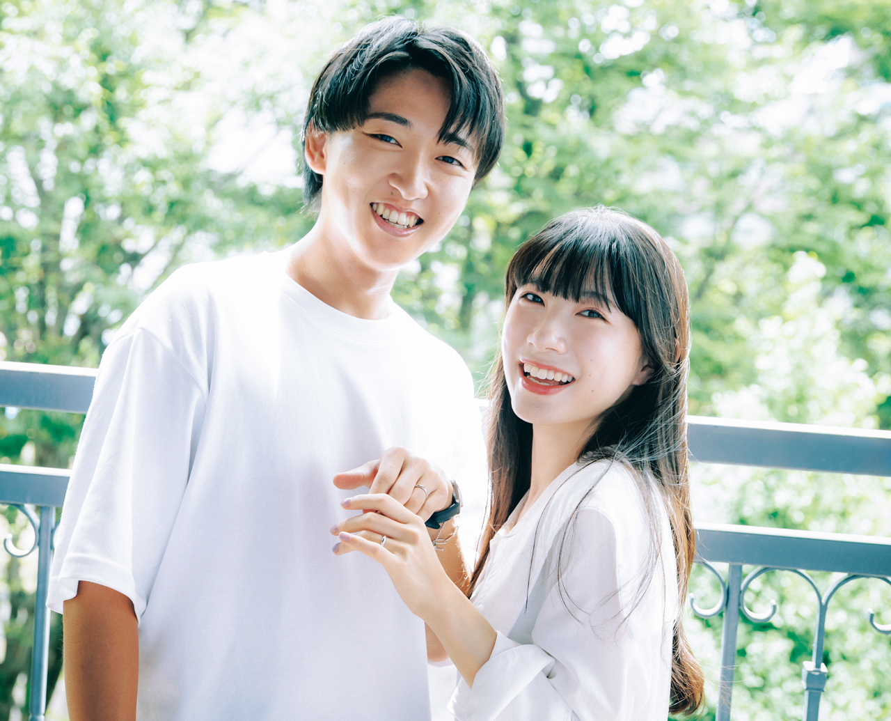 「〝日本一周企画〟を通じて、私たちは好きなことを仕事にする道を見つけることができました。そして絆も強く結ばれたんです。いつだって一緒に頑張って、6年以上の活動を通して公私ともにパートナーとして認められ、なんとなく〝このまま彼と一生を共に過ごすだろう〟って思っていた矢先、彼からハワイ旅行に誘われました。目的はホノルルマラソンに参加すること。走り切れるか不安でしたが、しっかり完走できて大喜び! ふたりでレストランに出かけてプチ祝賀会をし、ホテルに戻ると…なんと花束と指輪が! 旅行を絡めた彼らしいサプライズプロポーズは、実はかなり前から計画していてくれたみたい。断る理由はひとつもなく、おつきあいのときと同じく、すぐに『よろしくお願いします』と答えました♡