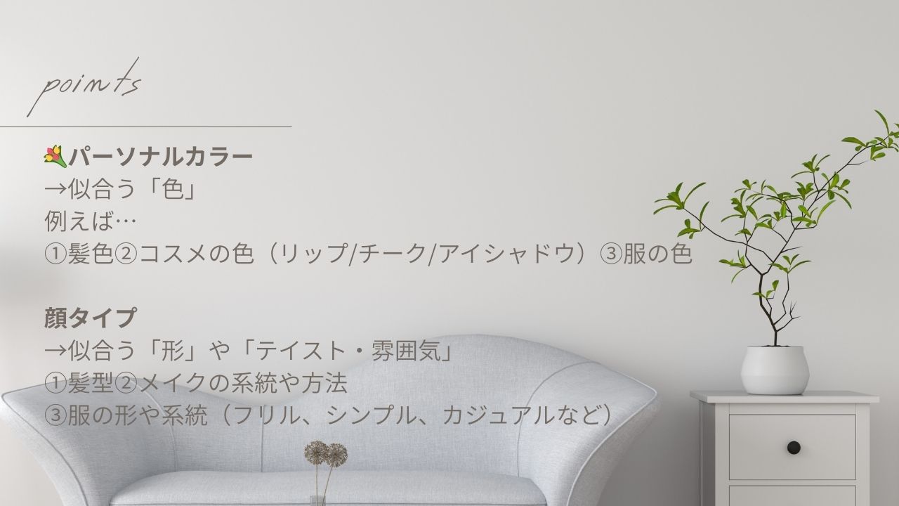 最後に、「パーソナルカラー」と「顔タイプ」の分類をおさらい