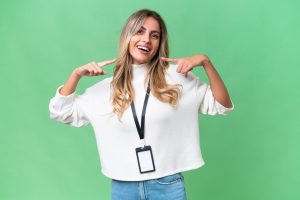 • Young,Uruguayan,Woman,With,Id,Card,Over,Isolated,Background,Giving