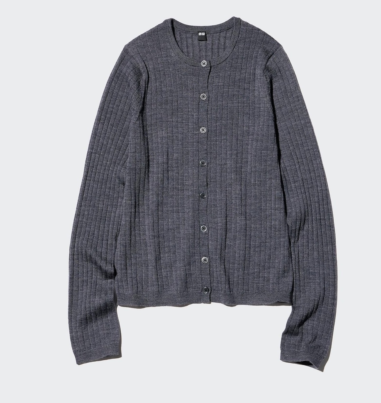 肌寒くなるこれからの季節、1枚持っておくと便利なのがユニクロの「メリノリブクルーネックショートカーディガン」。極細メリノウール100%の素材で、なめらかな肌ざわりと上品な光沢感が魅力。ワイドリブ編みで体のラインを拾いにくく、すっきりとしたシルエットを演出してくれます。