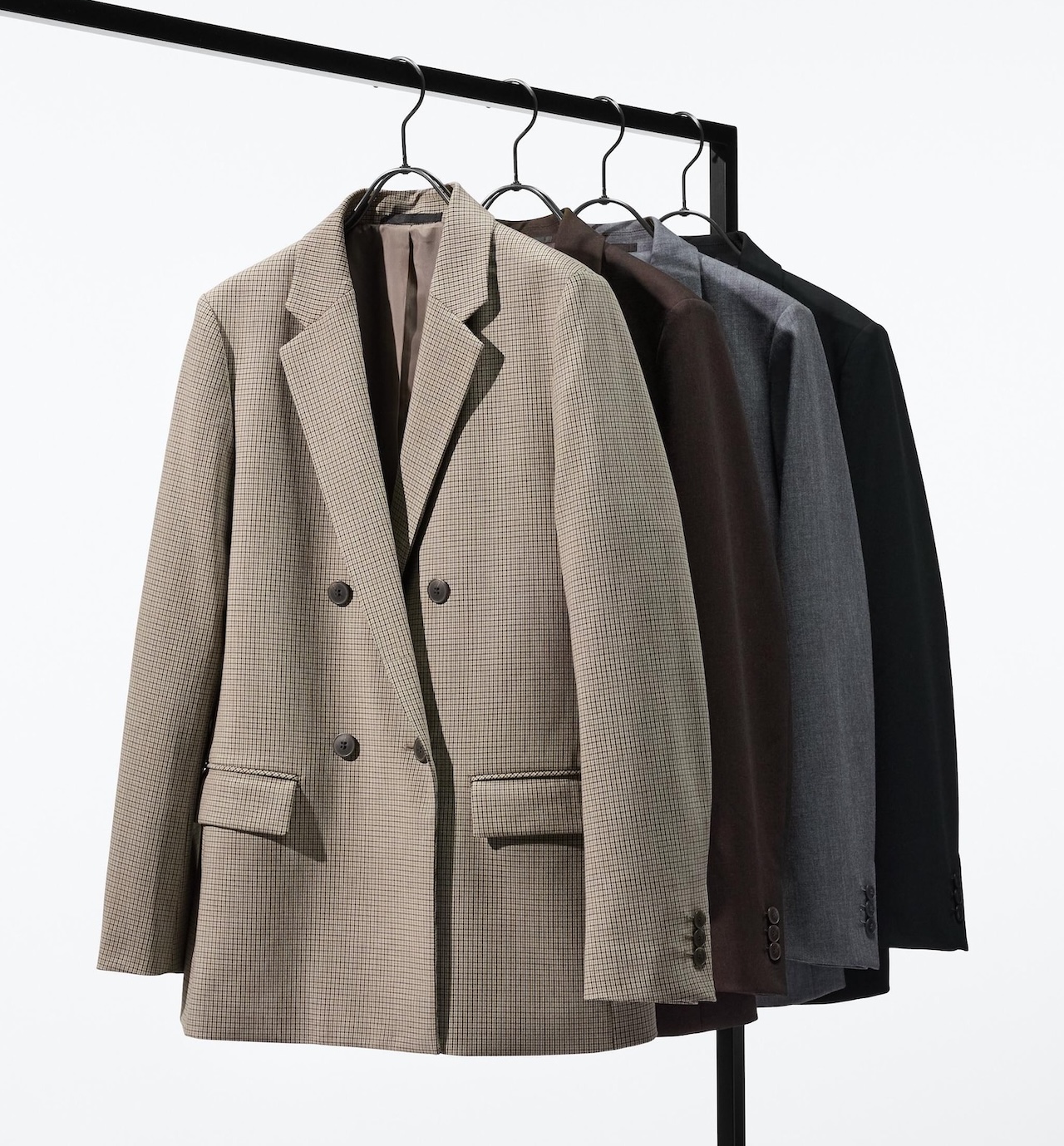 ハリ感があり、上品な印象の「ダブルジャケット」。ショート丈で、Tシャツやシャツの上にさっと羽織るだけで、温度調節もバッチリ。ポケットもついていて実用性も◎。カラーはブラック、ナチュラル、ベージュ、ネイビーの4色展開で、XSから3XLまでサイズ展開が幅広いのもうれしい。