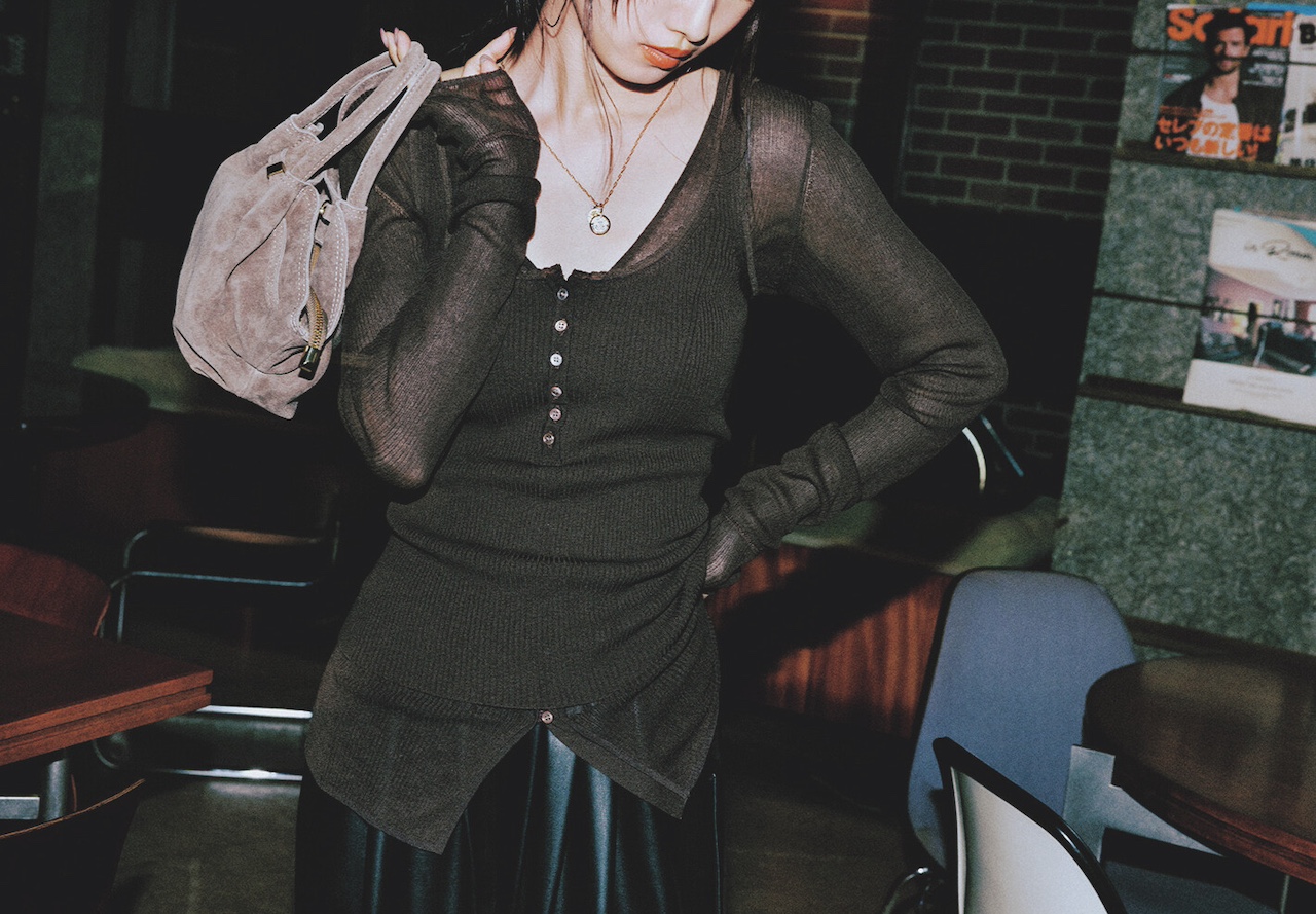 ひと手間かけた洒落感と、さりげない肌見せが叶うレイヤードニット。きれいめなタックワイドパンツを合わせて、力の抜けた色っぽさに♡