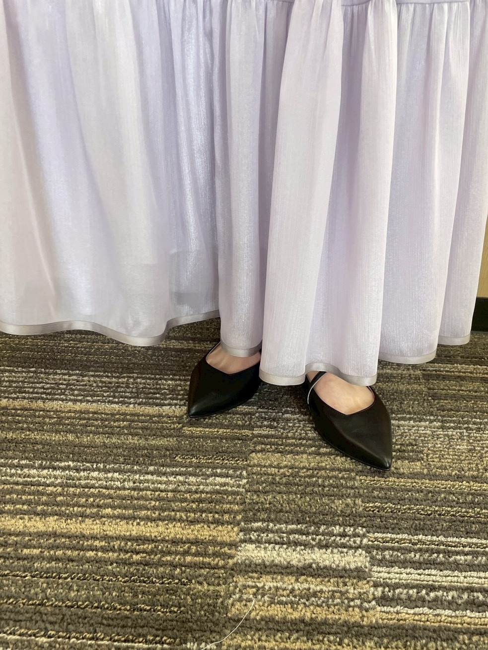 動くたびにふんわり揺れる、愛らしさたっぷりのティアードスカート【パープルティアードスカート着用画像4枚】