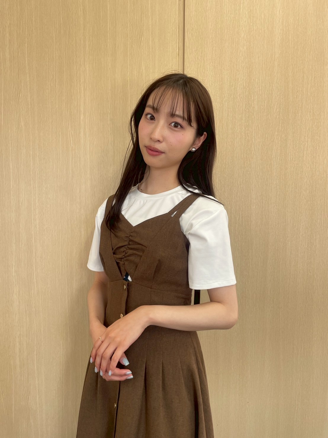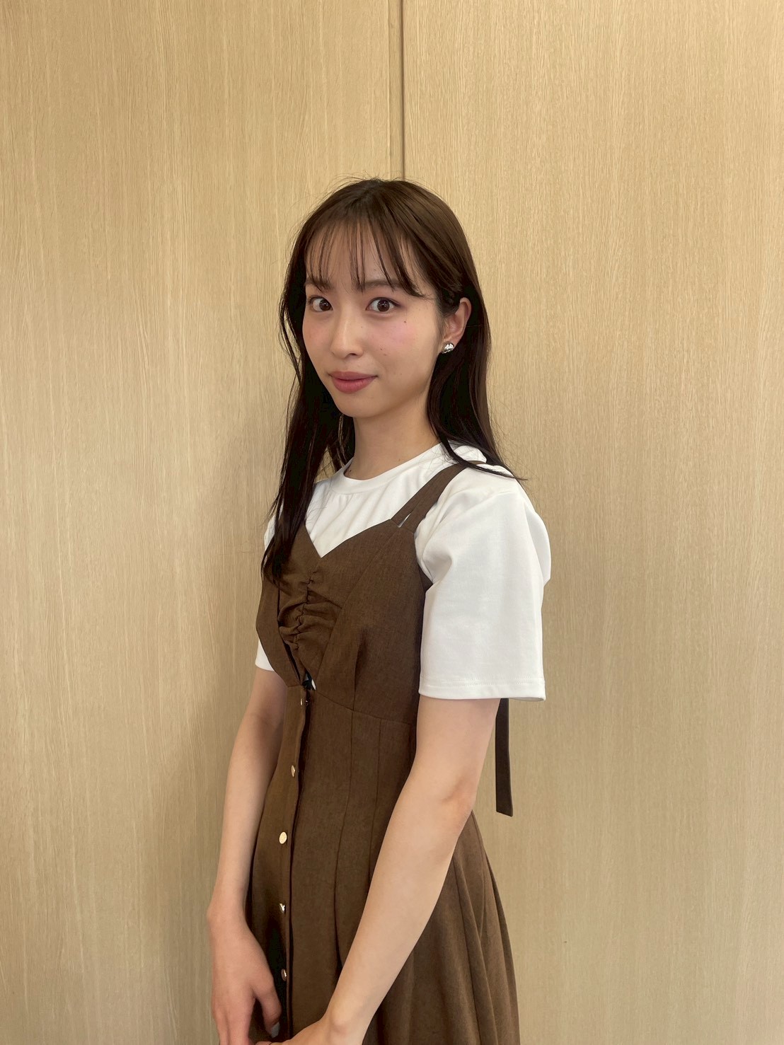 本日の林さんのコーデは、お腹いっぱいラーメンを食べても着痩せを狙えそうなほど、きゅっ&ふんわりでスタイルアップなワンピースが主役です♡