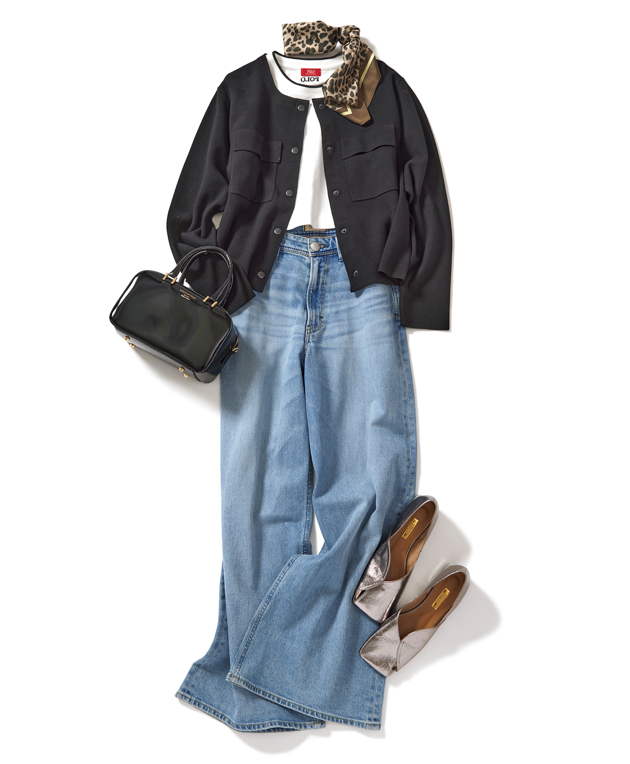 1.いつものデニムスタイルがあか抜ける、小物使いに注目!