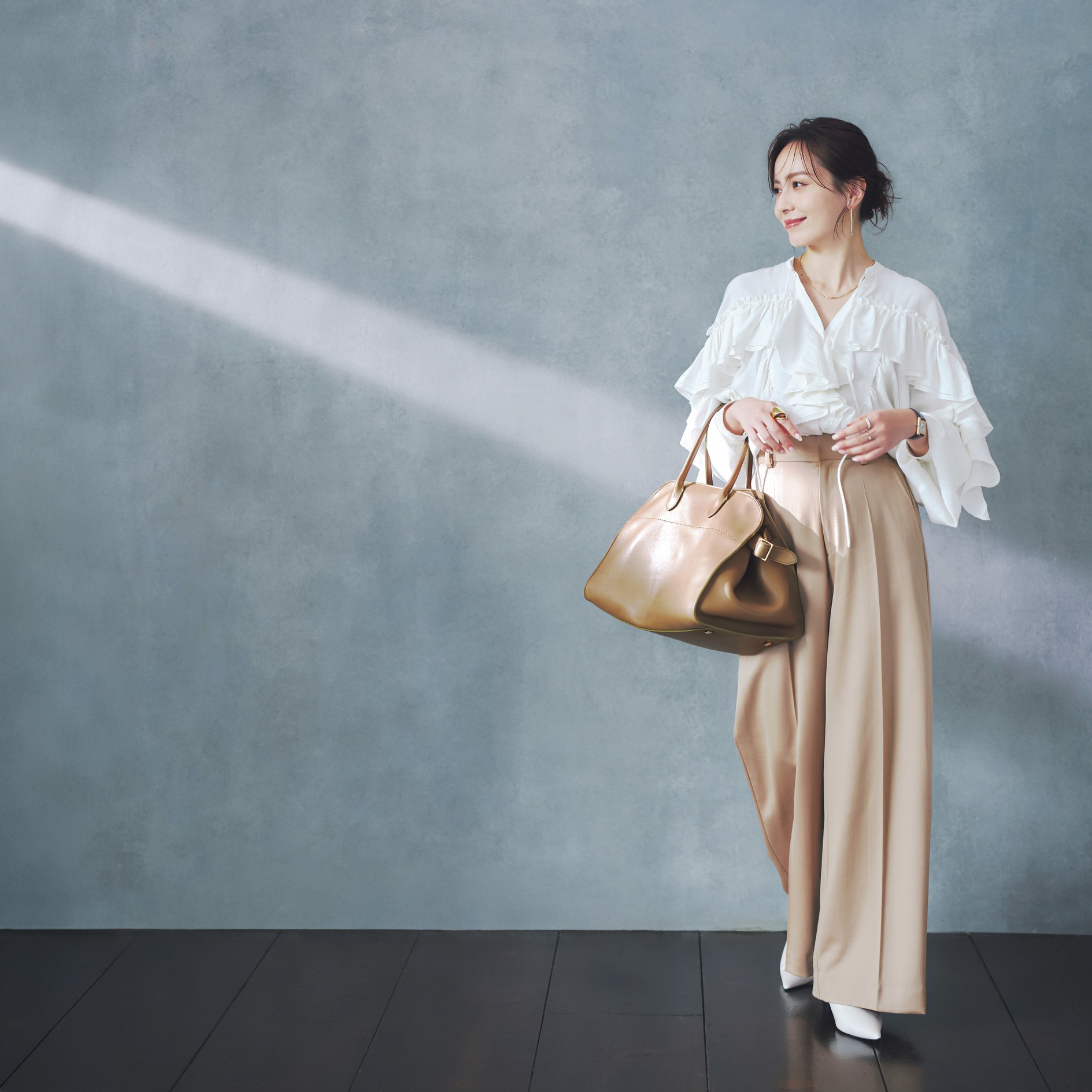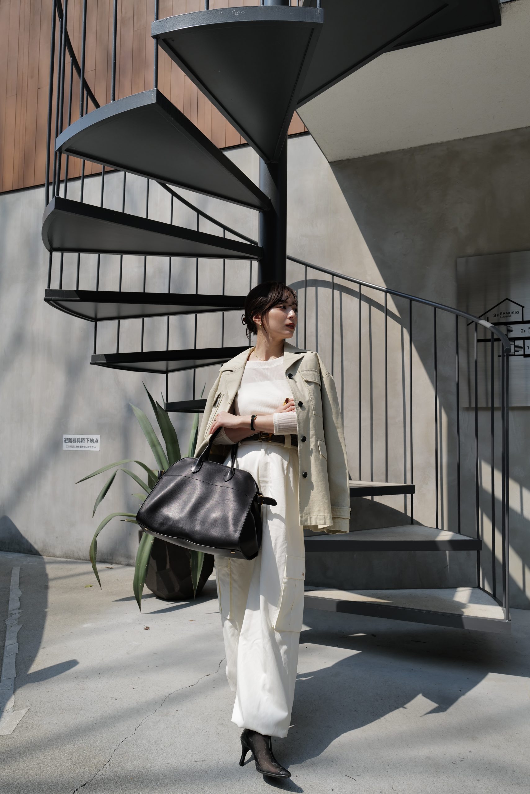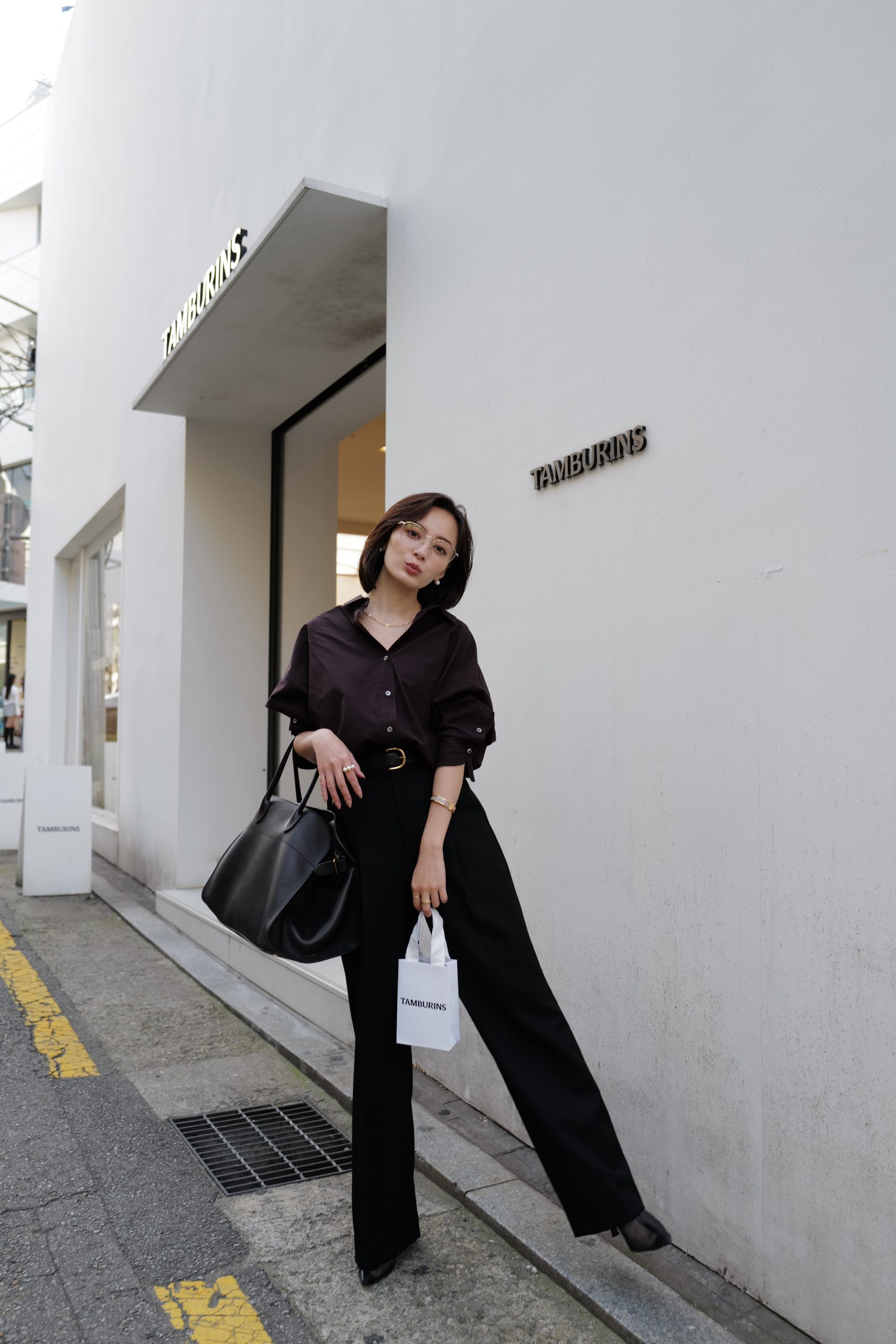 「『The Row』のトートは前からずっとほしくて。ただ、ブラックはなかなか手に入らないと聞いていたので、ベージュを購入しました。質感が美しくボリュームもあってコーディネートのポイントになる素晴らしいバッグなので、黒も欲しかったな…と思っていたところ、お店で偶然ブラックのバッグに出合ってお買い上げ! 同じバッグでもカラーで雰囲気がガラッと変わるので、ふたつあってよかったと思います。皆さんもブラックを見つけたらすぐGETしてくださいね(笑)」