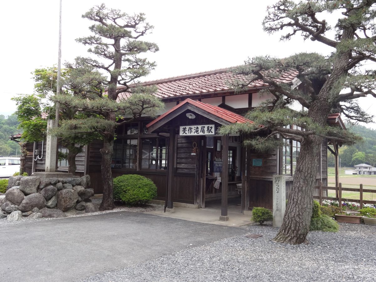 昭和初期に建てられた木造駅舎はレトロ好きにはたまらない雰囲気が…! 有名な日本映画のロケ地としても知られている美作滝尾駅は、小さな待合室、木のベンチや看板など全てが映画の一場面のよう。