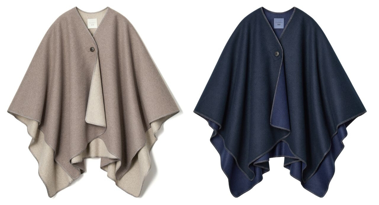肌触りのいいポンチョは、ブランケットとしても、ボタンを留めてアウターとしても使える優れもの。