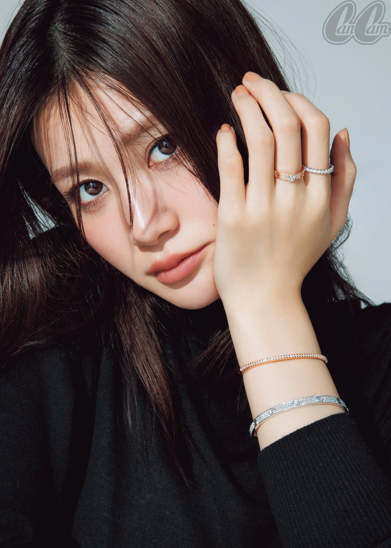 今号の大特集“25歳から始める「ジュエリー入門」”にちなみ、至高のジュエラー・カルティエのダイヤモンドを身につけた“大人めるる”が登場。まっすぐな眼差しに思わず見とれる、ゴージャスなカットに仕上がりました♡
