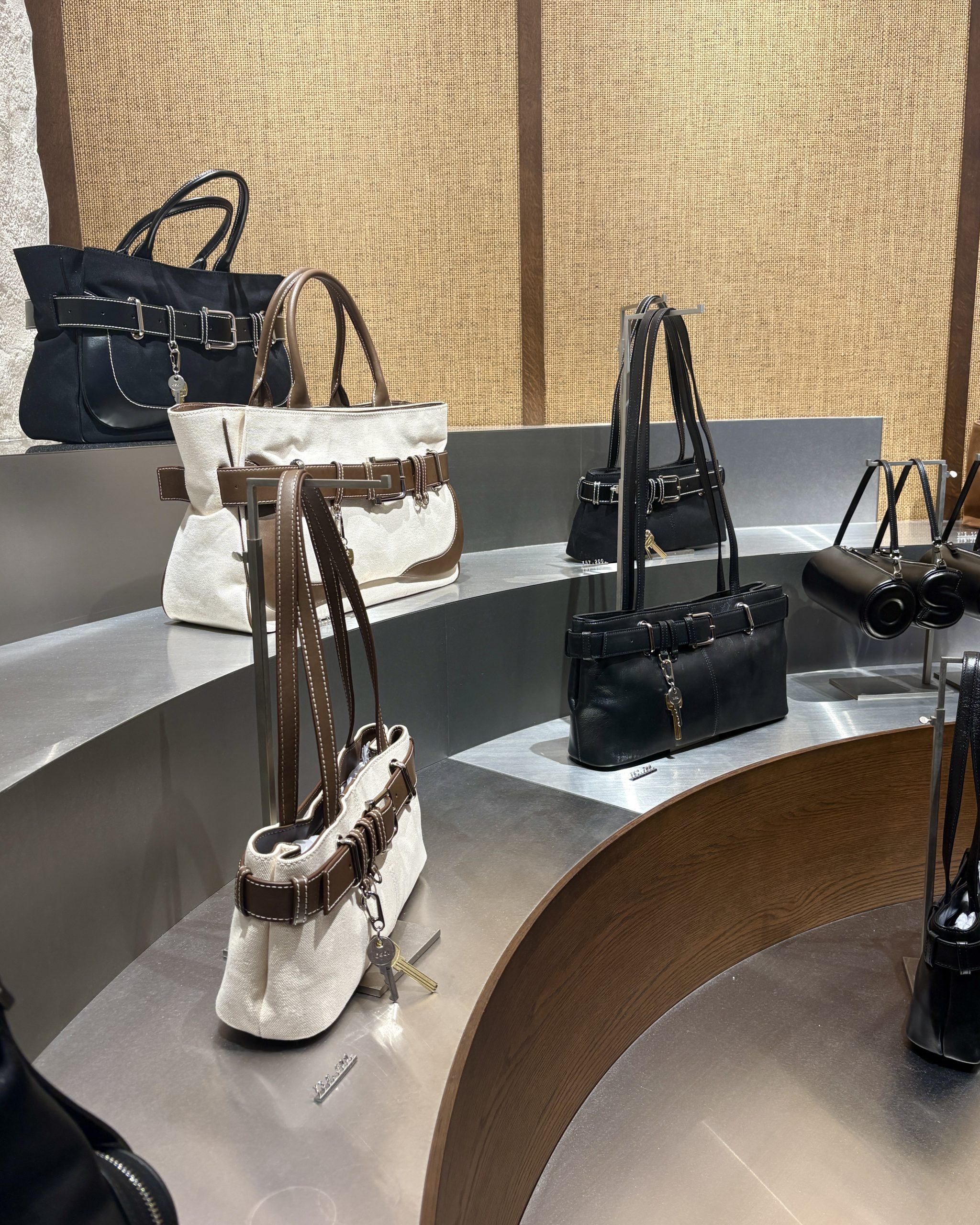 中でも一目惚れしたのが、「SHOULDER BROCLEMINI バッグ」のダークブラウン。太めのベルトがアクセントになっていて、カラーも含めて絶妙にY2Kっぽい!