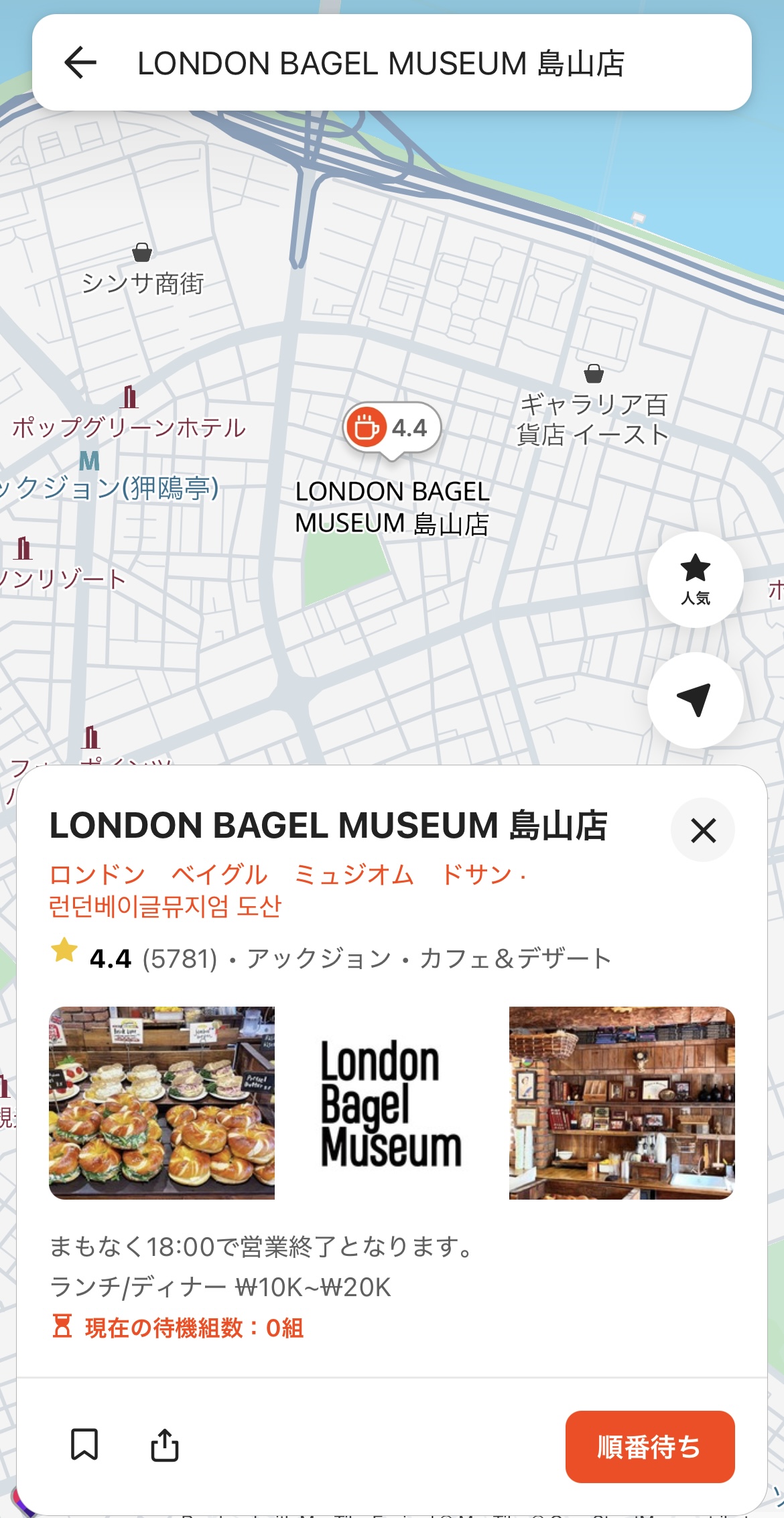 London bagel museumはソウル内に店舗がいくつかあるにも関わらず、普通に並ぶと2〜3時間待つほど人気のベーグルカフェ。実際にお店で並ぶ場合は朝8時から並べますが、せっかくの旅行ならもっと有意義に時間を使いたいですよね。