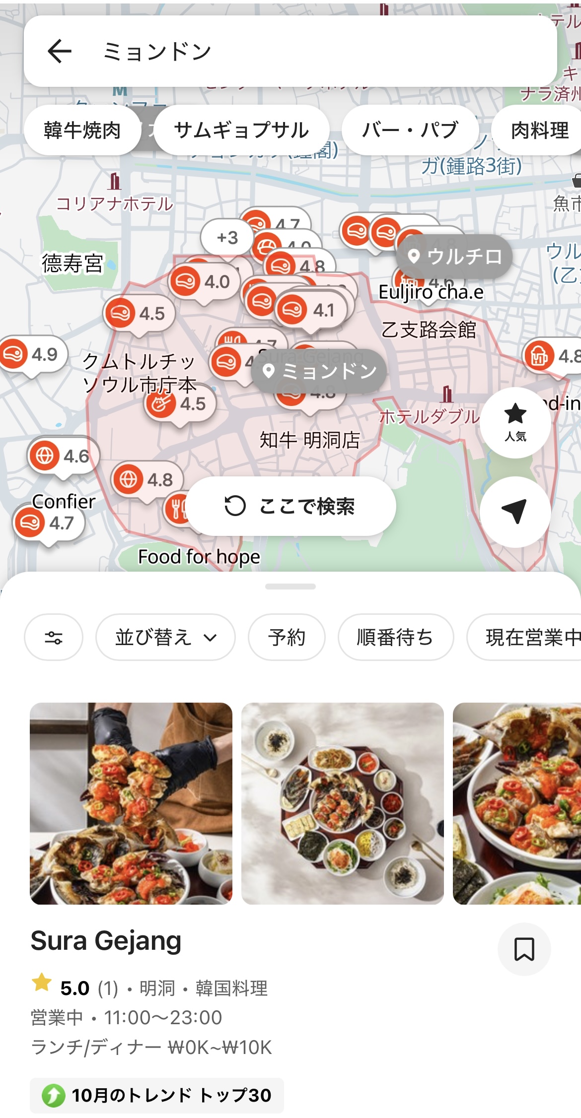 ・日本語で場所を打ち込んでも出てこないときがあり、韓国語をコピペする必要がある
