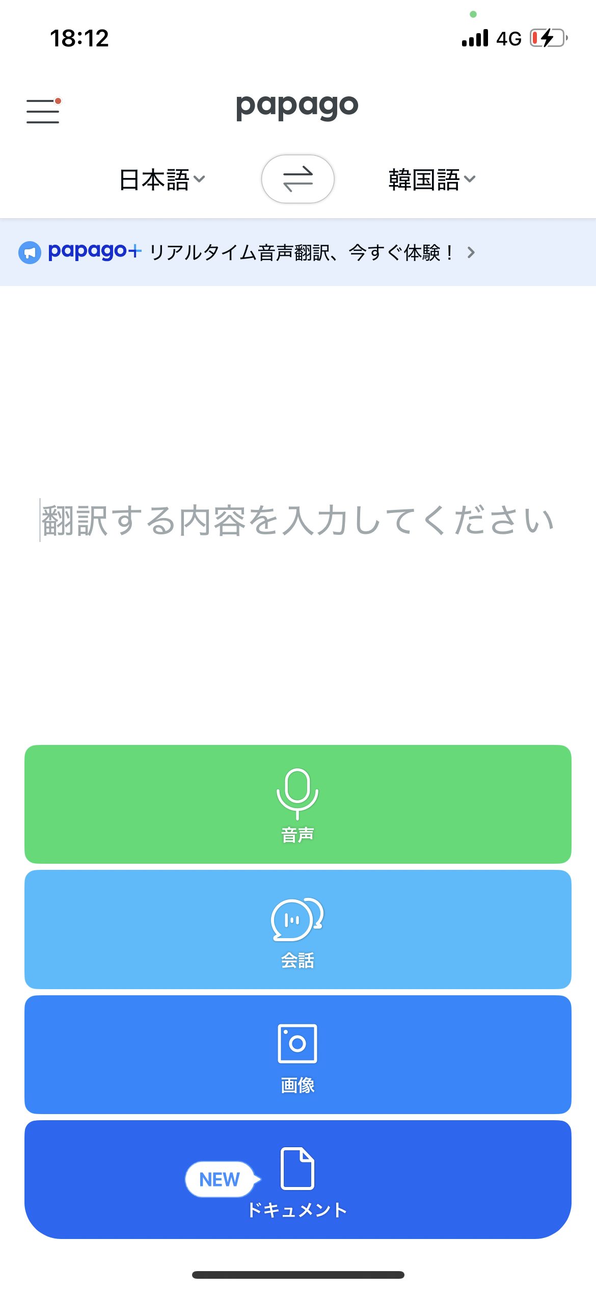 確かに他の翻訳アプリでも十分問題なく使えるのですが、papagoは韓国語の翻訳にとても適している点が魅力。先にオススメしたNAVER MAPと同じ韓国の会社が作っているアプリなので、韓国語の翻訳に違和感が少なく、ChatGPTの無料版のように回数制限があるわけでもないのでとても使いやすいです。